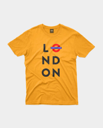 Get ready to rock with our Scratch LONDON Tee. The one-color print of LONDON in a scratched frame with DizcoPunk under it adds a touch of punk to your wardrobe.